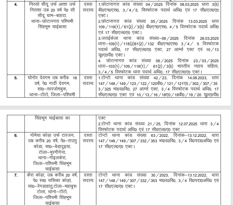 उल्लेखनीय है कि पश्चिमी सिंहभूम जिला अंतर्गत कोल्हान एवं सारंडा के क्षेत्र में पिछले कई वर्षो से प्रतिबंधित संगठन भाकपा माओवादी के इस्टर्न रिजनल ब्यूरो का संचालन केंद्रीय समिति सदस्य मिसिर बेसरा, पतिराम मांझी उर्फ अनल, असीम मंडल, सुशांत उर्फ अनमोल, मेहनत उर्फ मोछू, अजय महतो उर्फ बुधराम, पिन्टू लोहरा, अश्विन, अमित मुंडा, सालुका कायम एवं सागेन अंगरिया के नेतृत्व में किया जा रहा है। इनके विरूद्ध प्रभावी कार्रवाई हेतु झारखंड पुलिस, झारखंड जगुआर, कोबरा एवं केंद्रीय रिजर्व पुलिस बल की संयुक्त बलों का अभियान दल गठित कर लगातार अभियान संचालित किया जा रहा है।