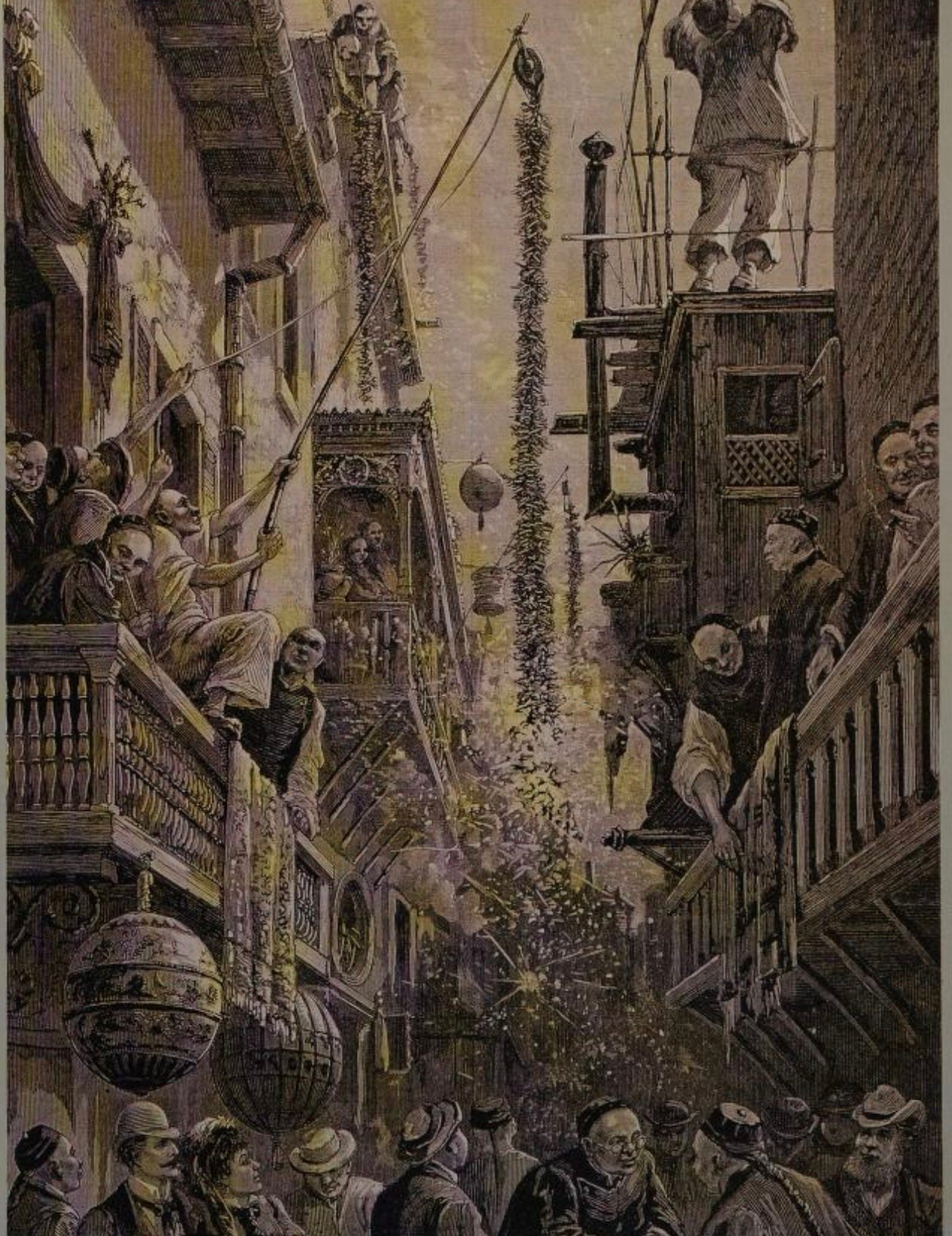 माना जाता है कि आतिशबाजी से बुरी आत्माएं दूर भागती हैं और खुशियां और अच्छी किस्मत लेकर आती हैं। कहा जाता है कि बौद्ध भिक्षु ने गन पाउडर की खोज की। माना ये भी जाता है कि गन पाउडर और उससे निकलने वाली आग को बौद्ध अपने अंदर छिपी हुई बुराइयों को भगाने का साधन मानते थे। सातवीं सदी के तांग वंश के शासन से आगे बढ़ते हुए दसवीं सदी में चीन में आतिशबाजी का बाजारीकरण हो गया। अब लोग बाजारों में पटाखे खरीदने लगे थे। इस दौरान गन पाउडर या बारुद से रॉकेट बनाना भी चीनियों ने बखूबी सीख लिया, वक्त और आगे बढ़ा तो अरब के देशों के कारोबारियों ने जिनका सिल्क रुट से चीन से सीधा संपर्क था पटाखे बनाने की तकनीक सीख ली। सीरिया के लेखक ने अपनी किताब में रॉकेट, फुलझड़ियों का जिक्र किया है। अरबी लोग इसे चाइनीज फ्लावर के नाम से पुकारते थे ।