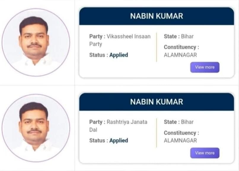 पटनाः बिहार विधानसभा चुनाव में इस बार एक अजब गजब मामला सामने आया है। इस बार चुनाव में एक ही उम्मीदवार ने दो पार्टियों से नामांकन कर दिया। मधेपुरा के आलमगर सीट पर ये मामला सामने आया है। नवीन कुमार ने इंडिया गठबंधन के दो दलों से अपना नामांकन दाखिल किया है। उन्होंने आरजेडी और वीआईपी पार्टी से नामांकन दाखिल कर दिया है।