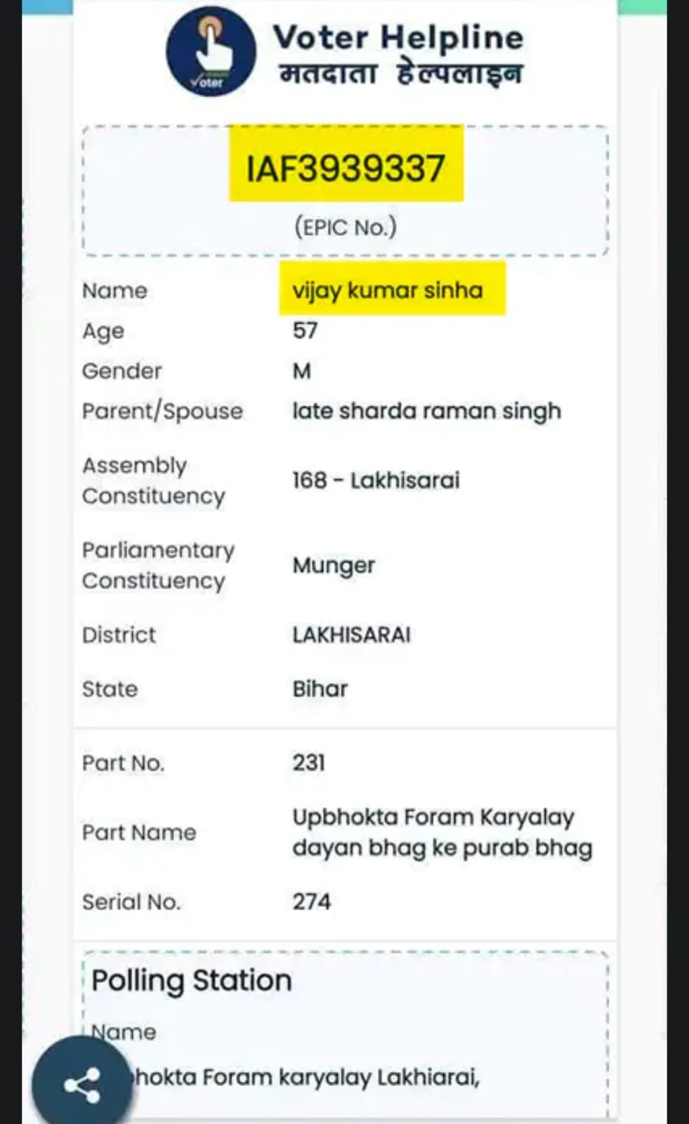 –साहब दो जगह के मतदाता हैं – लखीसराय और बांकीपुर, पटना