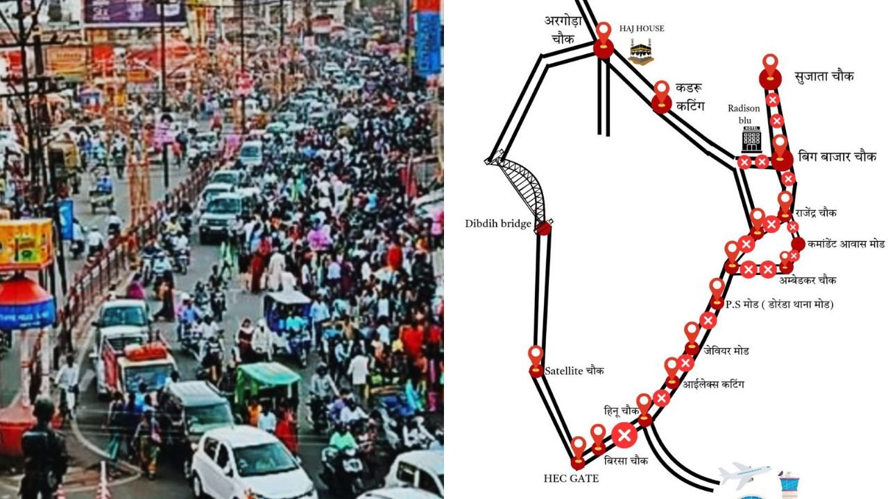 10 जुलाई को बिग बाजार चौक से कडरू ब्रिज के नीचे चौक तक (कार्यक्रम में भाग लेने वाले वाहनों को छोड़कर। सभी प्रकार के वाहनों का प्रदेश एवं परिचालन वर्जित रहेगा।