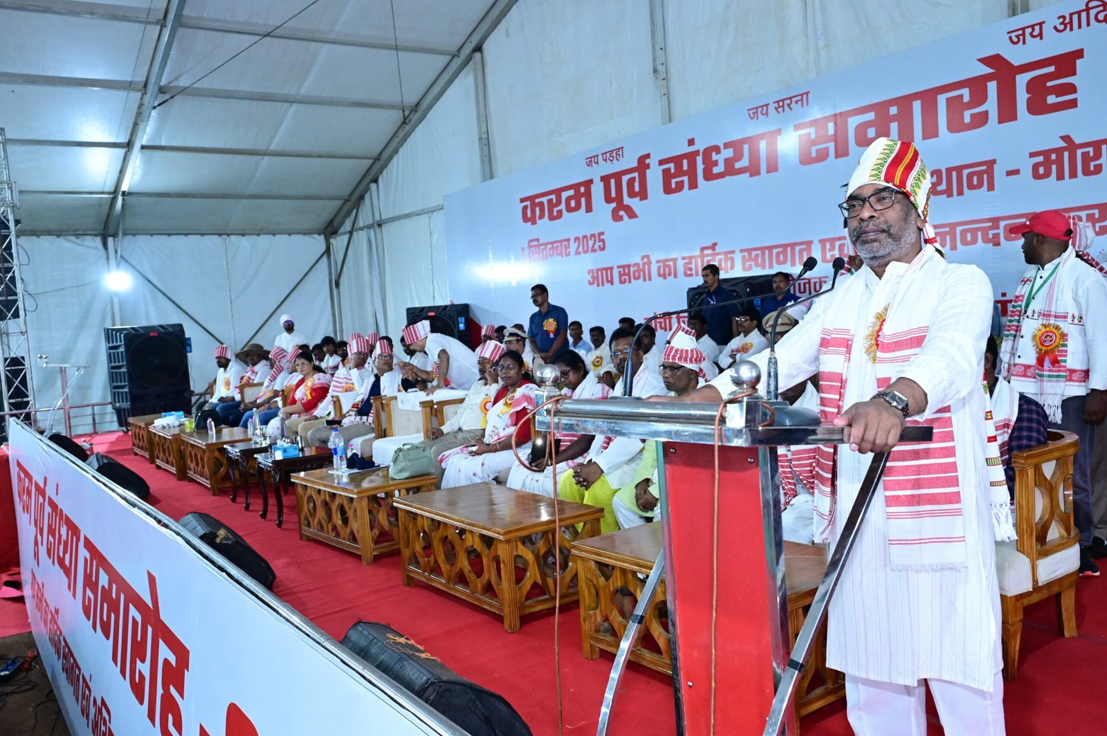 रांची: मुख्यमंत्री हेमन्त सोरेन आज रांची के मोरहाबादी मैदान में आयोजित “करम पूर्व संध्या समारोह-2025” कार्यक्रम में सम्मिलित हुए। इस अवसर पर मुख्यमंत्री ने समस्त झारखंडवासियों को करम महोत्सव की हार्दिक बधाई एवं शुभकामनाएं दी। मुख्यमंत्री ने कार्यक्रम को संबोधित करते हुए कहा कि हमारे पूर्वजों ने एक समृद्ध सामाजिक, सांस्कृतिक विरासत हमें दिया है। पूरा आदिवासी समाज एकजुट रहकर इस विरासत को इसी प्रकार आगे बढ़ाएं। आदिवासी समुदाय की संरक्षा के लिए देश में कई कायदे-कानून बनाए गए हैं, कई सारी व्यवस्थाएं भी बनाई गई हैं। मुख्यमंत्री हेमन्त सोरेन ने कहा कि पूरी दुनिया में आदिवासी समाज के प्रति हमेशा विचार-विमर्श होता रहा है।