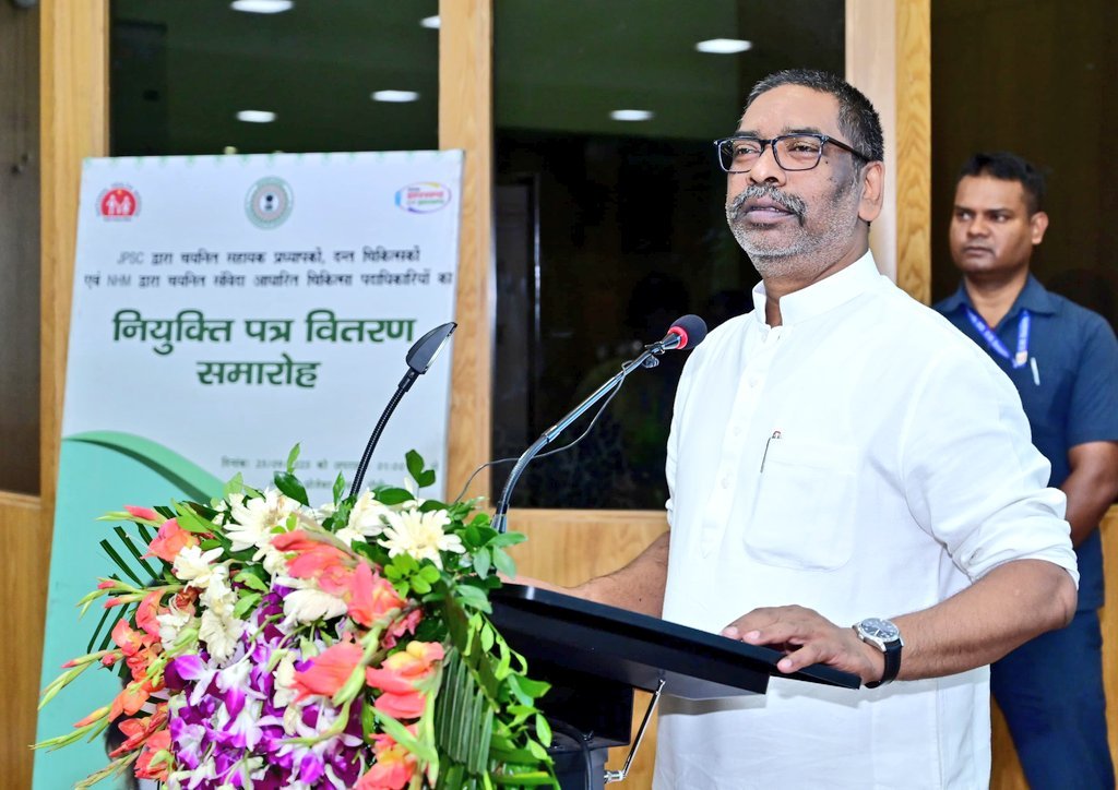 रांचीः गुरुवार को धुर्वा स्थित प्रोजेक्ट भवन में मुख्यमंत्री हेमंत सोरेन ने जेपीएससी द्वारा चयनित सहायक प्राध्यापकों, दन्त चिकित्सकों और एनएचएम द्वारा चयनित संविदा आधारित चिकित्सा पदाधिकारियों को नियुक्ति पत्र सौंपा। इस कार्यक्रम के दौरान स्वास्थ्य मंत्री इरफान अंसारी और स्वास्थ्य विभाग के कई वरिष्ठ अधिकारी मौजूद थे।