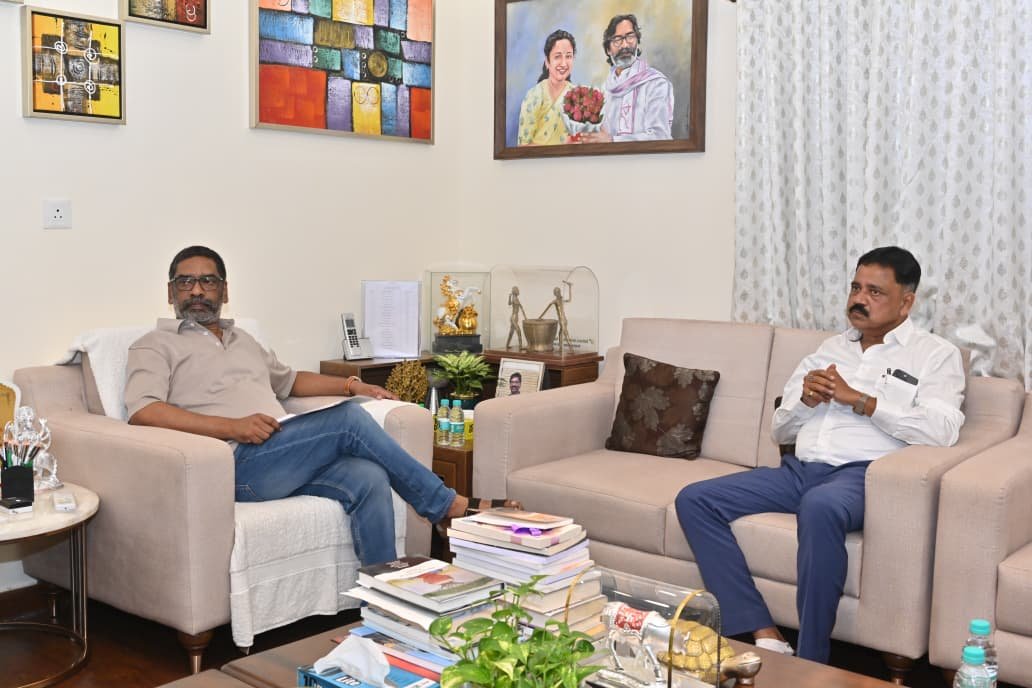 रांचीः मुख्यमंत्री हेमंत सोरेन ने उनके आवासीय कार्यालय में बुधवार को पर्यटन, कला, संस्कृति, खेल और युवा मामले विभाग के मंत्री सुदिव्य कुमार, सचिव मनोज कुमार, खेल निदेशक शेखर जमुआर एवं झारखंड ओलंपिक एसोसिएशन के महासचिव मधुकांत पाठक ने शिष्टाचार भेंट की। इस अवसर पर उन्होंने मुख्यमंत्री को 24 से 26 अक्टूबर तक राजधानी रांची के मोरहाबादी स्थित बिरसा मुंडा फुटबॉल स्टेडियम में आयोजित होने वाली चौथी साउथ एशियन एथलेटिक्स फेडरेशन (सैफ) सीनियर एथलेटिक्स चैंपियनशिप के उद्घाटन समारोह में मुख्य अतिथि के रूप में शामिल होने के लिए आमंत्रण पत्र सौंपा। उद्घाटन समारोह 24 अक्टूबर को संध्या 6 बजे से आयोजित होगा। खेल मंत्री ने रांची में आयोजित हो रहे सैफ सीनियर एथलेटिक्स प्रतियोगिता की तैयारियों से संबंधित जानकारी से मुख्यमंत्री को अवगत कराया।