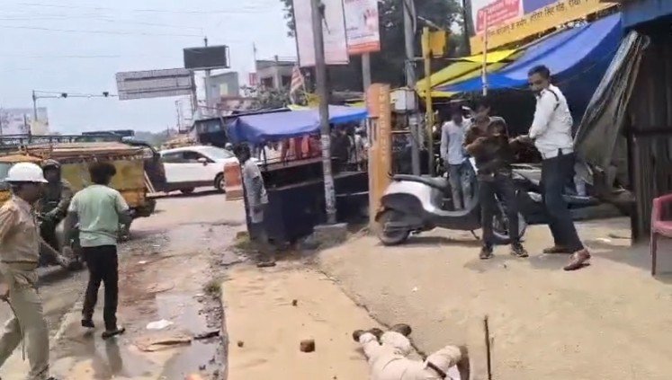 ट्रैफिक पुलिस के जवान पर युवक ने पत्थर से किया हमला