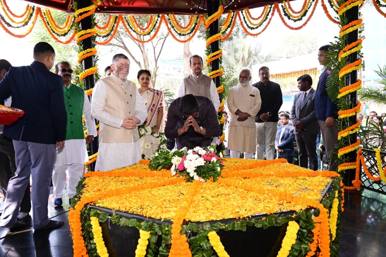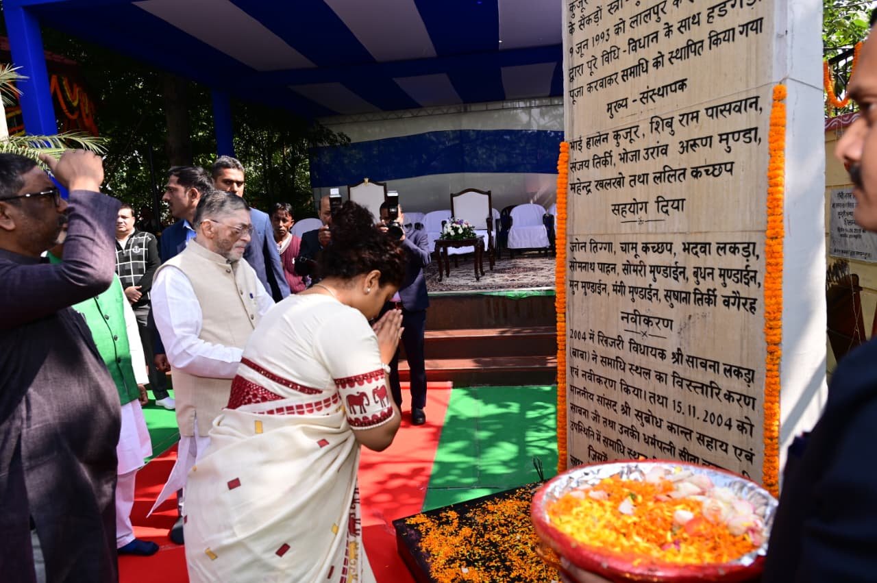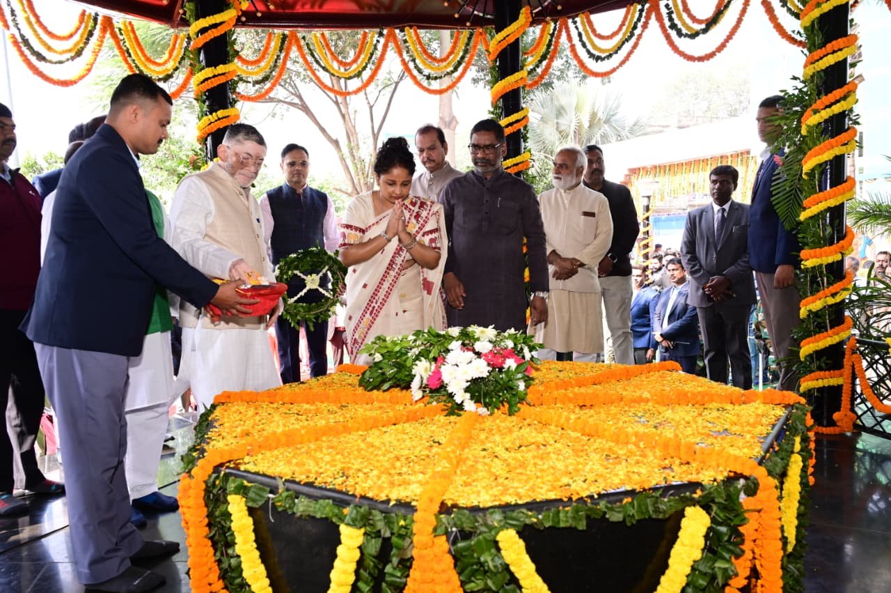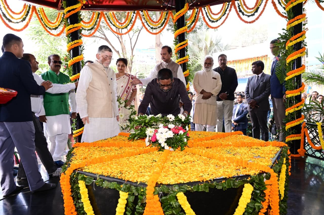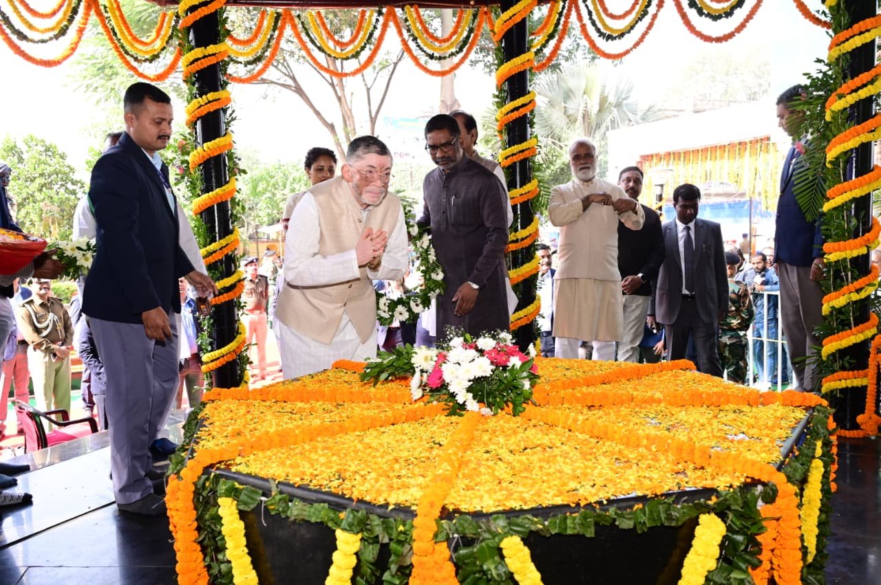 रांचीः भगवान बिरसा मुंडा की जयंती पर राज्यपाल संतोष गंगवार और मुख्यमंत्री हेमंत सोरेन ने कोकर स्थित समाधि स्थल पर श्रद्धांजलि दी । बिरसा मुंडा की जयंती के दिन ही झारखंड राज्य की स्थापना भी हुई थी । मुख्यमंत्री के साथ विधायक कल्पना सोरेन, कांग्रेस नेता सुबोधकांत सहाय भी मौजूद थे ।