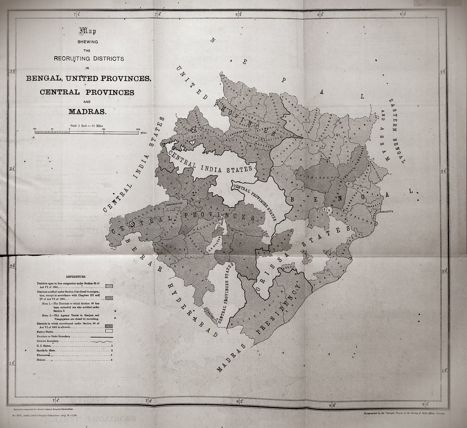 1841 में असम कंपनी द्वारा पहली बार मजदूरों को भर्ती करने का प्रयास किया गया। इस प्रयास में 652 लोगों को जबरन भर्ती किया गया, लेकिन हैजा फैलने के कारण उनमें से अधिकांश की मृत्यु हो गई। जो बचे थे, वे भाग गए। 1859 में ‘वर्कमेन ब्रेच ऑफ कॉन्ट्रैक्ट एक्ट’ पारित किया गया, जिसने अनुबंधित मजदूरों के अनुबंध तोड़ने पर कठोर दंड, जैसे कोड़े मारने, को लागू किया। इसने अनुबंधों के माध्यम से असम के बाहर से मजदूरों की भर्ती करके बागानों में श्रमिकों की कमी को कम किया। “अरकट्टी” या बिचौलियों को क्षेत्र के बाहर से मजदूरों की भर्ती के लिए नियुक्त किया गया था। 1870 में, मजदूरों की भर्ती के लिए “सरदारी प्रणाली” पेश की गई।