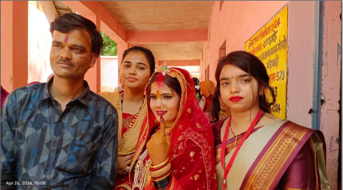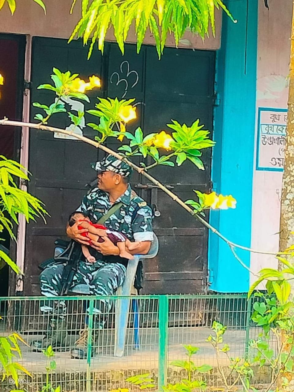 मां कर रही है वोट, बच्चे को देख रहा है गार्ड