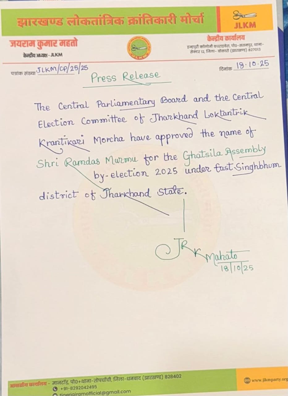 इससे पहले जेएमएम उम्मीदवार सोमेश सोरेन ने शुक्रवार को अपना नामांकन दाखिल किया था। इसके साथ ही बीजेपी की ओर से पूर्व मुख्यमंत्री चंपाई सोरेन के बेटे बाबूलाल सोरेन ने भी पर्चा दाखिल किया था। 2024 में हुए विधानसभा चुनाव के दौरान बाबूलाल सोरेन को पूर्व मंत्री रामदास सोरेन ने 22 हजार से ज्यादा वोटों से हराया था और रामदास मुर्मू को इस मुकाबले में 8092 वोट मिले थे। इस बार रामदास की जगह उनके बेटे सोमेश उम्मीदवार है। जयराम महतो द्वारा चुनाव में उम्मीदवार देने के बाद मुकाबला त्रिकोणीय करने की पूरी कोशिश रामदास मुर्मू की होगी।