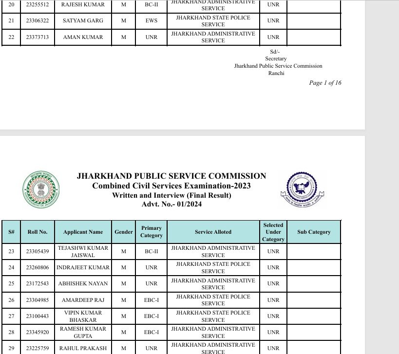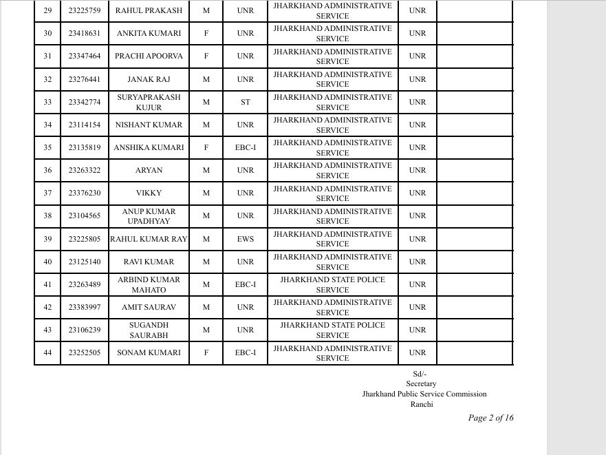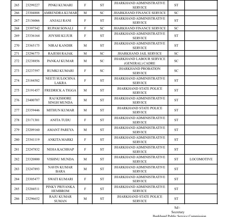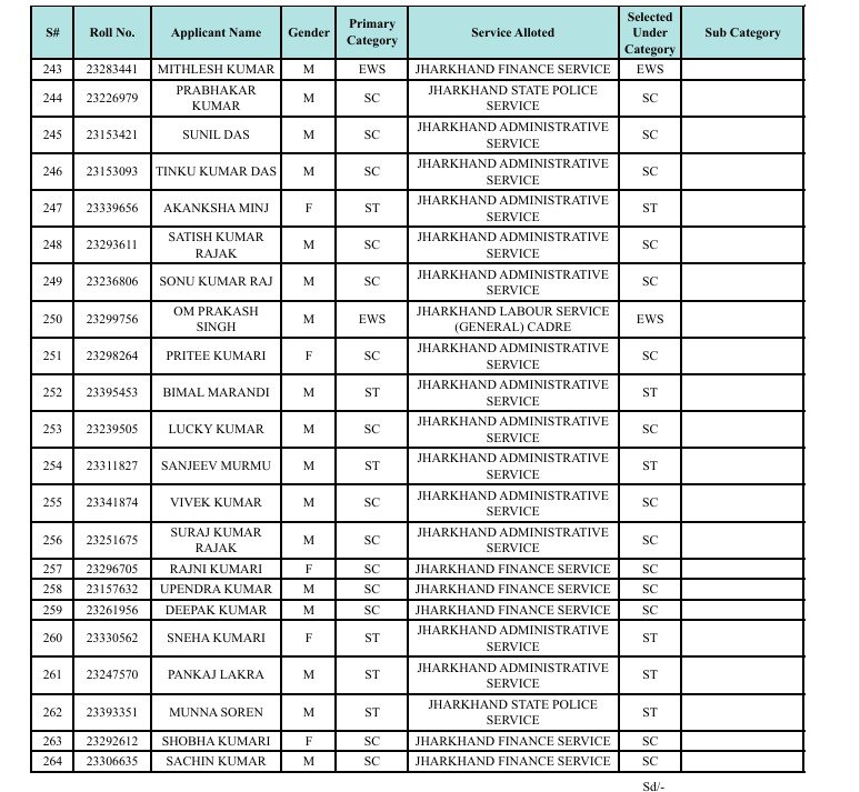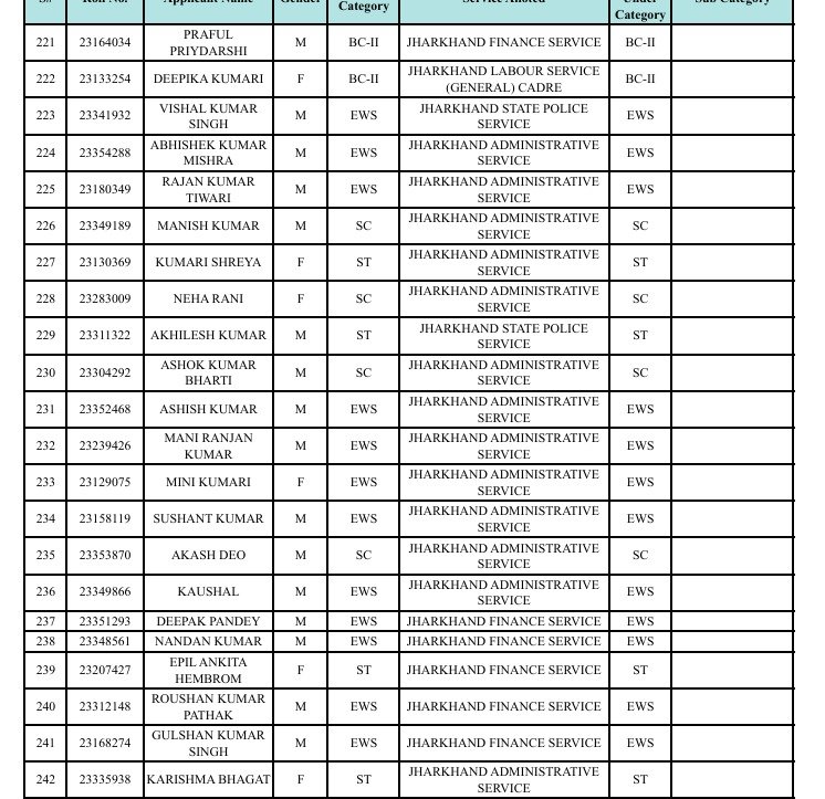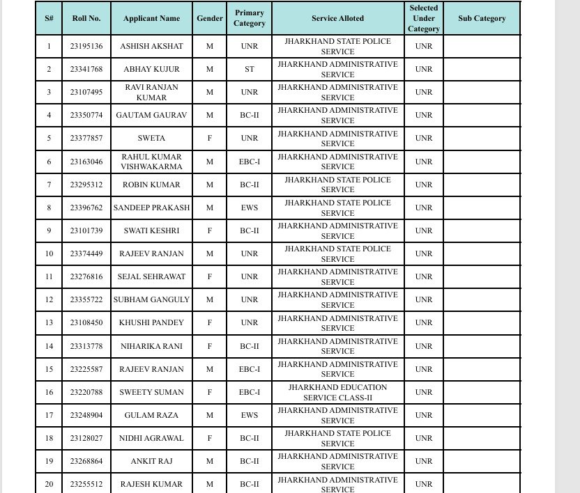 रांचीः झारखंड लोक सेवा आयोग ने झारखंड संयुक्त असैनिक सेवा मुख्य लिखित प्रतियोगिता परीक्षा के सफल उम्मीदवारों की लिस्ट जारी कर दी है। साक्षात्कार के बाद अंतिम परीक्षाफल प्रकाशित कर दिया गया है। जो आयोग के वेबसाइट www.jpsc.gov.in पर उपलब्ध है।
