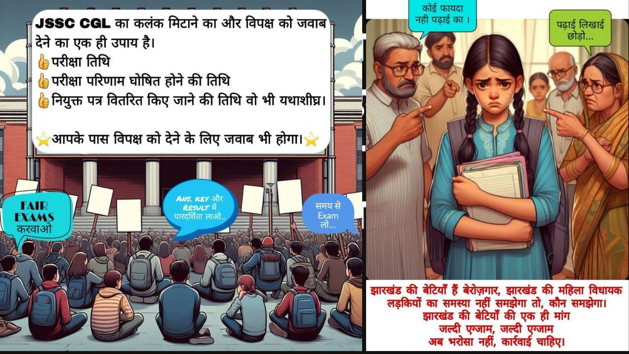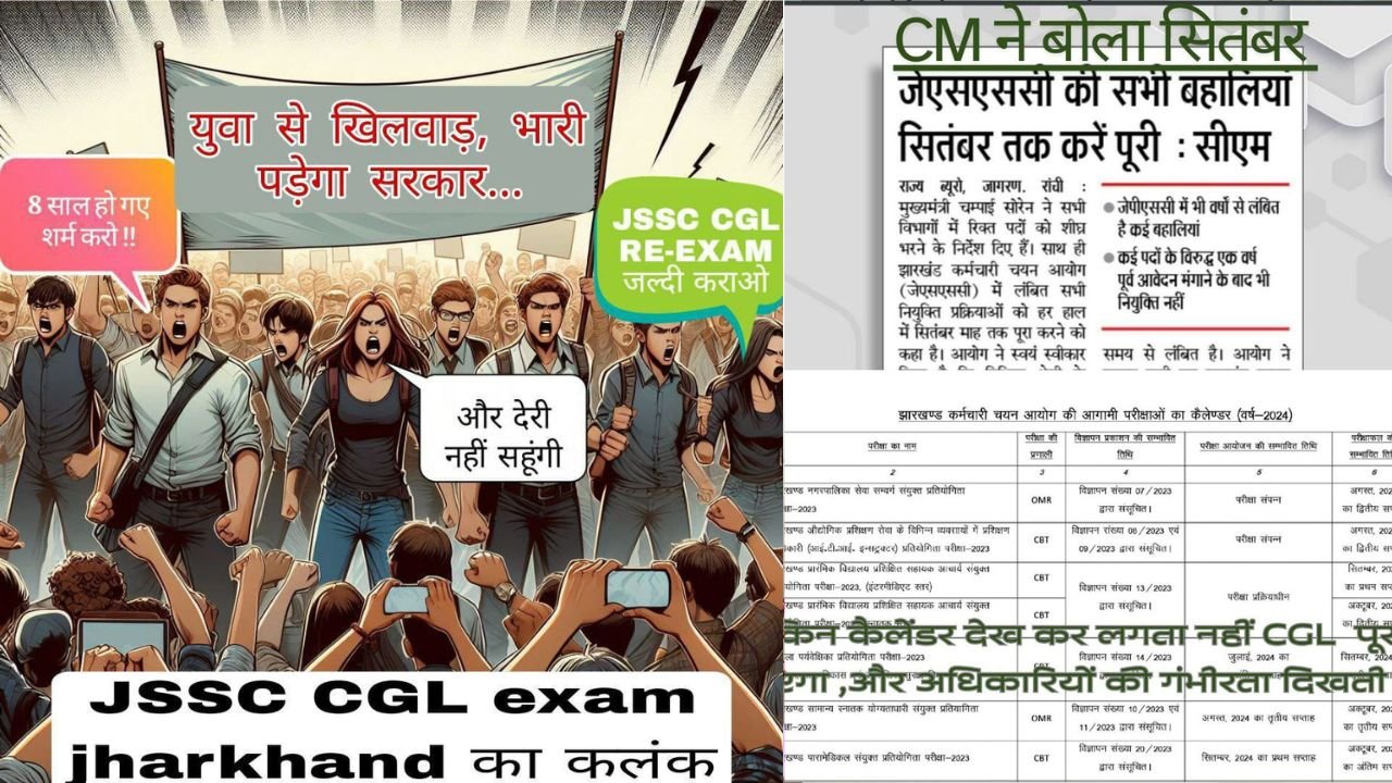 रांची: झारखंड में JSSC CGL परीक्षा कराने की मांग सोशल मीडिया पर ट्रेंड कर रहा है। शनिवार सुबह से ही एक्स पर छात्र अभियान चला रहे है। छात्रों के इस अभियान को कई लोगों और संगठनों ने अपना समर्थन दिया है।