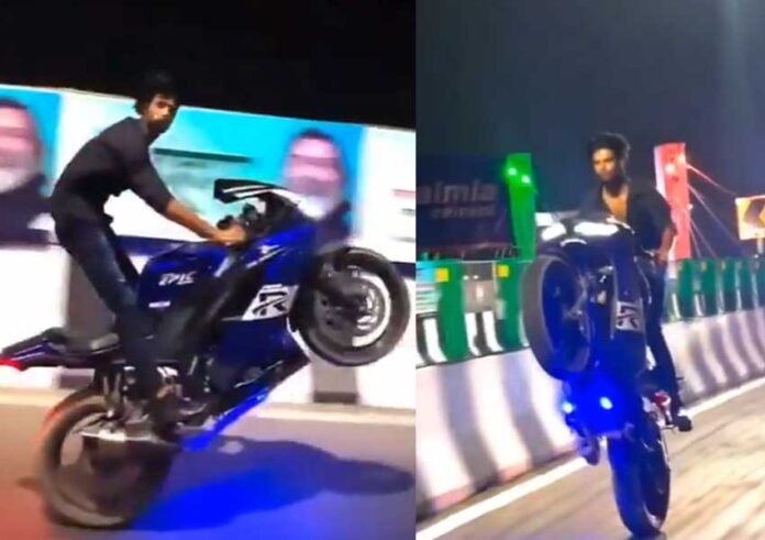 रांचीः राजधानी रांची के कार्तिक उरांव फ्लाइओवर पर उद्घाटन की रात ही स्टंट करने वाले युवक की पुलिस ने पहचान कर ली है। कोतवाली डीएसपी प्रकाश सोए के नेतृत्व पुलिस टीम ने फ्लाइओवर पर स्टंट करने करने वाले युवक की खोज कर ली लेकिन युवक को पुलिस पकड़े उससे पहले वो फरार हो गया। हालांकि पुलिस ने उसके बाइक को जब्त कर लिया है।
