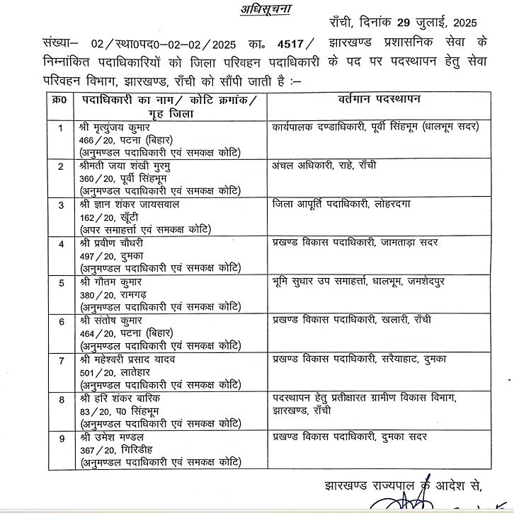 झारखंड में CO,DTO और BDO को लेकर बड़ा अपडेट,कार्मिक, प्रशासनिक सुधार और राजभाषा विभाग ने जारी किया निर्देश