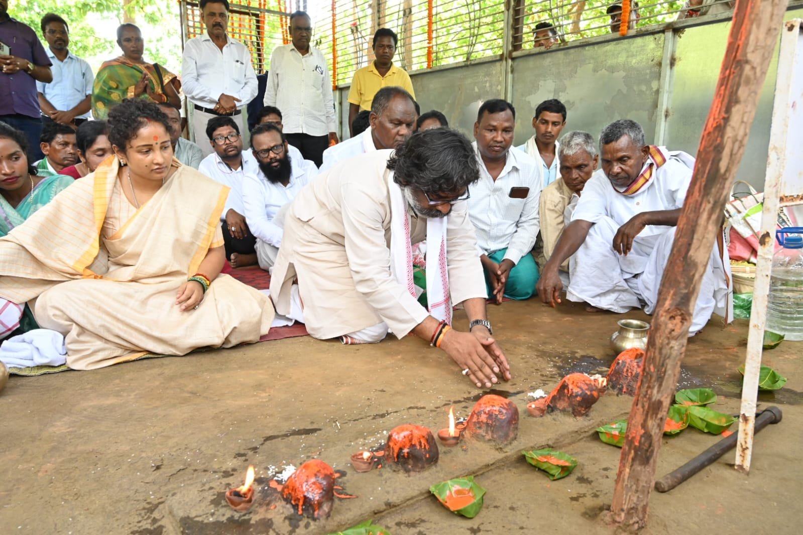गिरिडीह: मुख्यमंत्री हेमंत सोरेन अपनी पत्नी और गांडेय विधायक कल्पना सोरेन के साथ शुक्रवार को गिरिडीह पहुंचे। मुख्यमंत्री बनने के बाद पहली बार हेमंत सोरेन गिरिडीह पहुंचे तो उन्होने सबसे पहले पारसनाथ जाकर मरांड बुरू की पूजा अर्चना की। इस दौरान उनके साथ गिरिडीह विधायक सुदिव्य सोनू और राज्यसभा सांसद सरफराज अहमद भी मौजूद थे।यहां नायके (पुजारी) चांदोलाल टुडू के द्वारा पारंपरिक संथाली तरीके से पूजा अर्चना करवायी गयी।देवता की पूजा करते हुए मुख्यमंत्री ने राज्य की उन्नति की कामना की।मारांग बुरु दिशोम मांझी थान के प्रति संथाल समाज की विशेष आस्था है।समाज के लोग बताते हैं कि संथाल समाज के लोग जब भी कुछ कार्य करते हैं तो दिशोम मांझी थान को याद करते हैं।