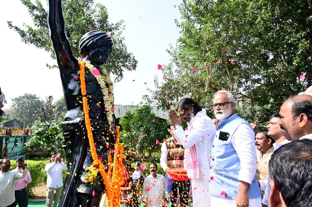 रांचीः झारखंड स्थापना दिवस और बिरसा मुंडा की जयंती पर मुख्यमंत्री हेमंत सोरेन ने संग्रहालय में विशाल प्रतिमा पर श्रद्धांजलि और दी राज्य स्थापना दिवस की बधाई दी । हेमंत सोरेन ने कहा कि “ताकत देना भगवान बिरसा, झारखण्ड विरोधियों के साजिशों का अंत समय अब आ गया है। हूल-उलगुलान होकर रहेगा….”
