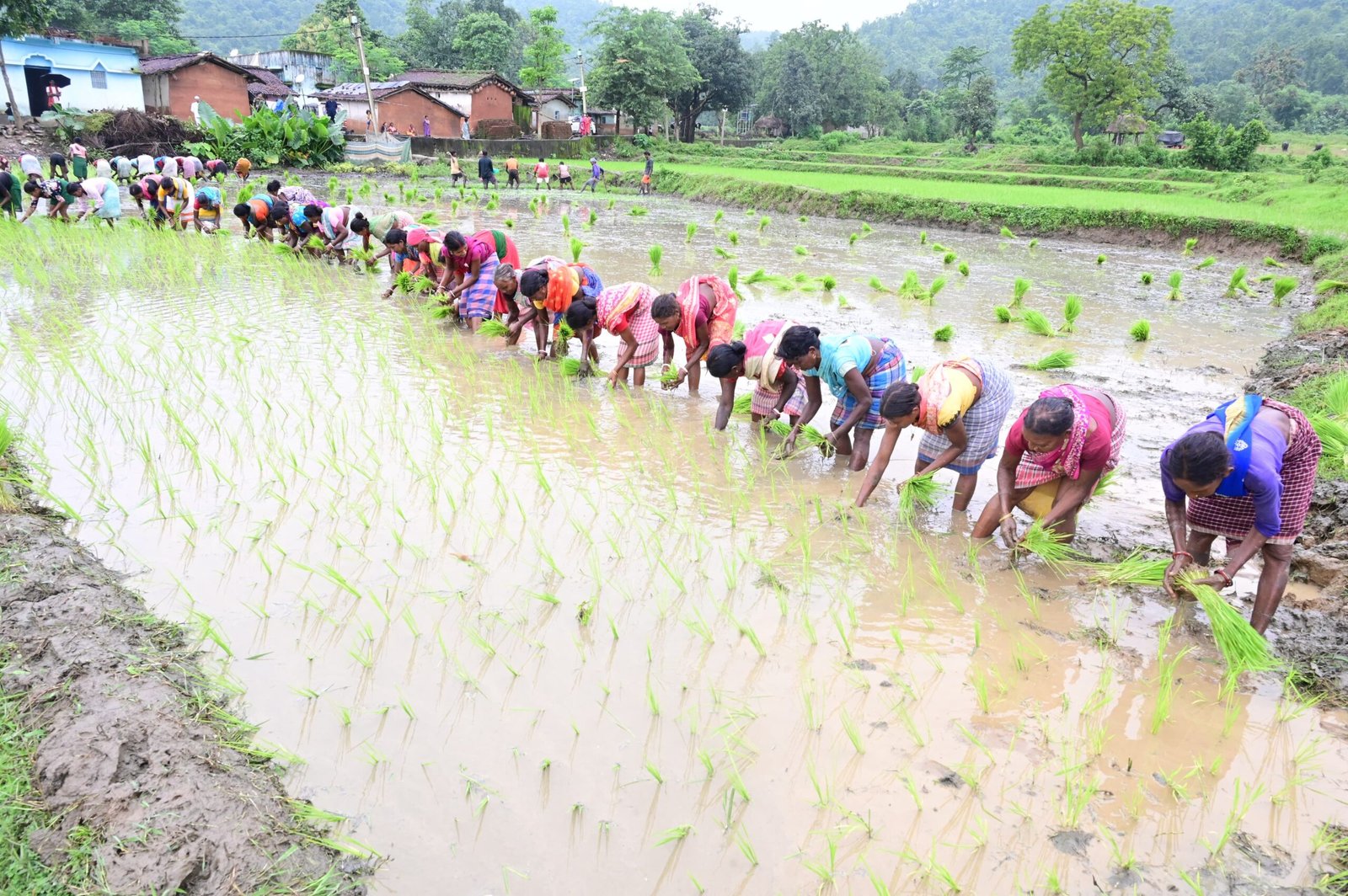 धनरोपनी करती गांव की महिलाओं से रू-ब-रू हुए मुख्यमंत्री