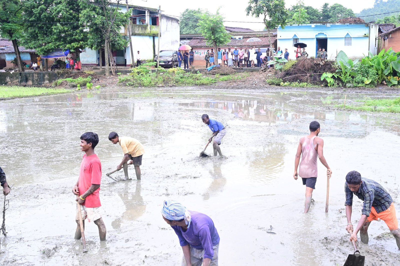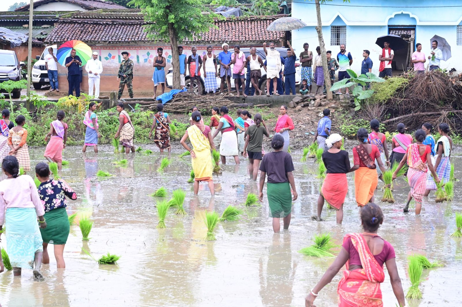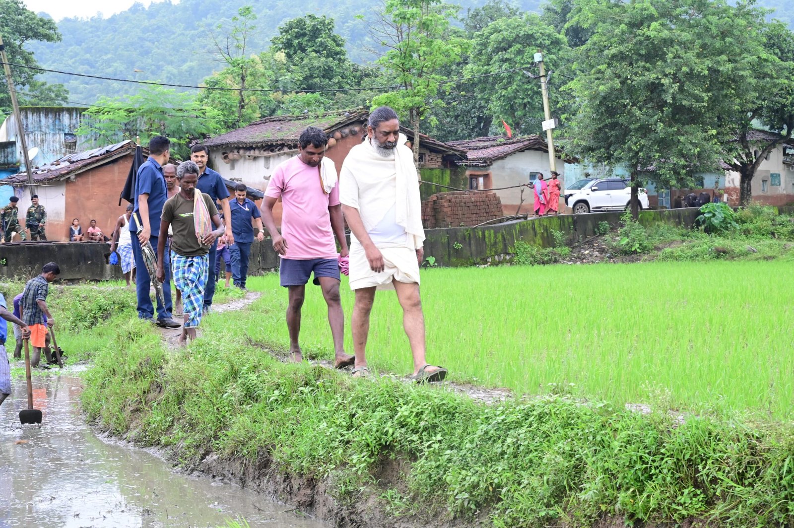 बारिश का मौसम है और खेतों में धनरोपनी हो रही है। मुख्यमंत्री ने खेतों में जाकर धान की बुवाई कर रही स्थानीय ग्रामीण महिलाओं से संवाद करते हुए खेती-किसानी के ताजा हालात से रूबरू हुए। मुख्यमंत्री ने कहा कि खेतों की हरियाली किसानों की कड़ी मेहनत को दर्शाता है । जब फसलें लहलहाएंगी, तो यह उनके चेहरे की मुस्कान बनेगी