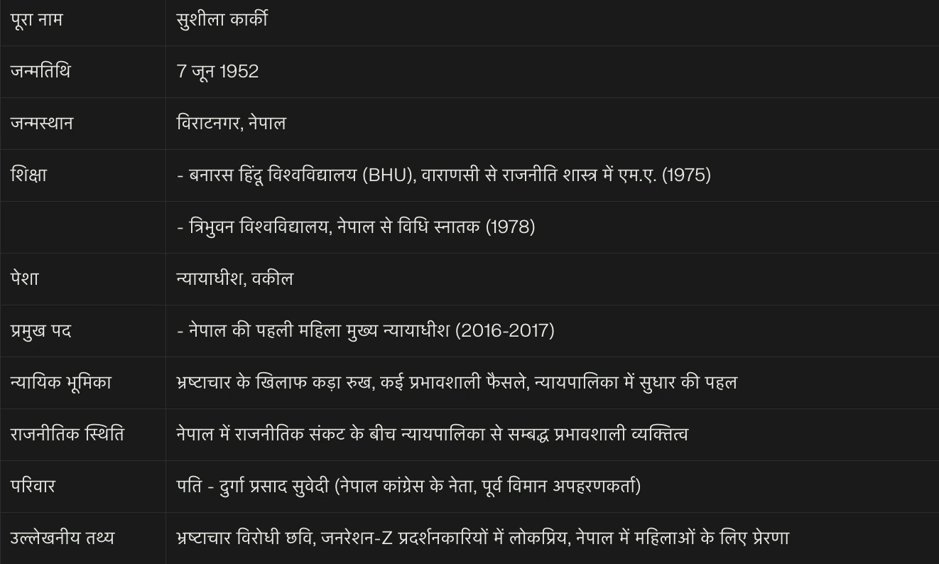 सुशीला कार्की बनीं नेपाल की पहली महिला प्रधानमंत्री, नेपाल में सत्ता पर सस्पेंस हुआ खत्म