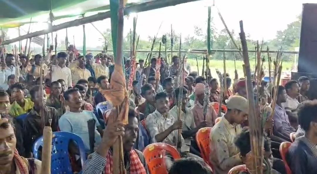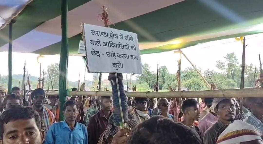गुरुवार को हुईआमसभा में सारंडा क्षेत्र के 60 गांवों के हजारों की संख्या में महिला,पुरुष लोग मौजूद रहे।जो अपने पारंपरिक हथियारों से लैस थे।