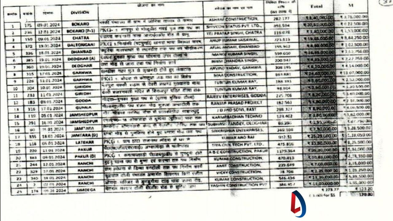 रांची: ग्रामीण विकास विभाग में हुए टेंडर कमीशन की जांच में ईडी की टीम को छापेमारी के दौरान मंत्री के नौकर के घर लेन-देन को लेकर कुछ दस्तावेज भी मिले थे। इस दस्तावेजों के आधार पर ईडी की टीम मंत्री को दिये जाने वाले कमीशन की रकम और उसके कोड को सुलझाने में लग गई है। मंत्री के लिए एम और एच कोड का इस्तेमाल किया जाता था। इसमें मंत्री आलमगीर आलम के अलावा कई और लोगों को दिये जाने वाले कमीशन का जिक्र है। 2024 में कमीशन के लेन देन की पूरी लिस्ट ईडी को मिल चुकी है। इसी लिस्ट के आधार पर ईडी मंत्री आलमगीर आलम उनके ओएसडी रहे संजीव लाल और उसके सहयोगी जहांगीर आलम से रिमांड में पूछताछ कर रही है। इस लिस्ट में दिये गये नामों से पता चलता है कि कई डिवीजन में पहले से दागी कई ठेकेदारों को नियम ताक पर रखकर टेंडर दिये गये।