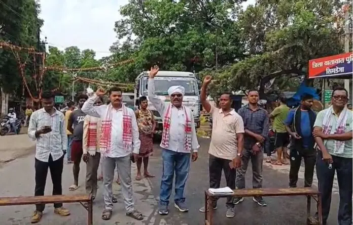 रांचीः डोरंडा-सिरमटोली फ्लाइओवर के रैंप निर्माण को लेकर आदिवासी बचाओ मोर्चा की अगुवाई में आदिवासी संगठनों के झारखंड बंद का असर बुधवार की सुबह देखने को मिल रहा है। राजधानी रांची के कांके और टाटीसिल्वे सहित कई स्थानों पर आदिवासी संगठनों ने सड़क जाम कर प्रदर्शन शुरू कर दिया है। बंद समर्थकों ने कांके-पतरातू मेन रोड़ को जाम कर दिया है। सिमडेगा में झूलन सिंह चौक पर आदिवासी नेताओं ने एनएच-143 को जाम कर दिया है।